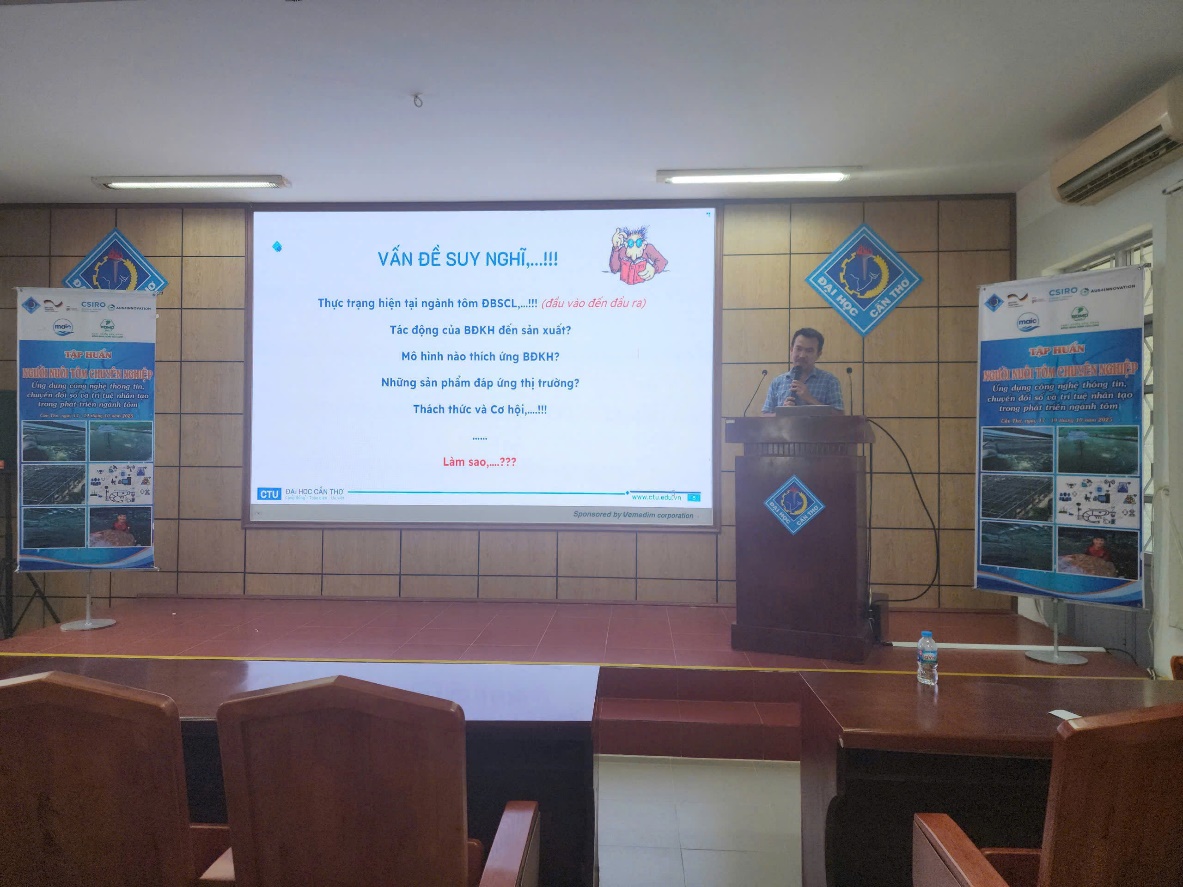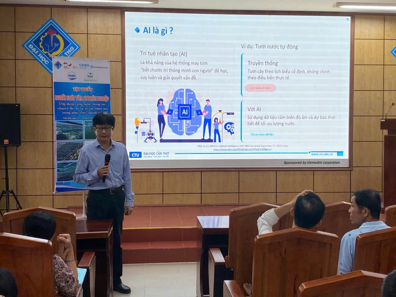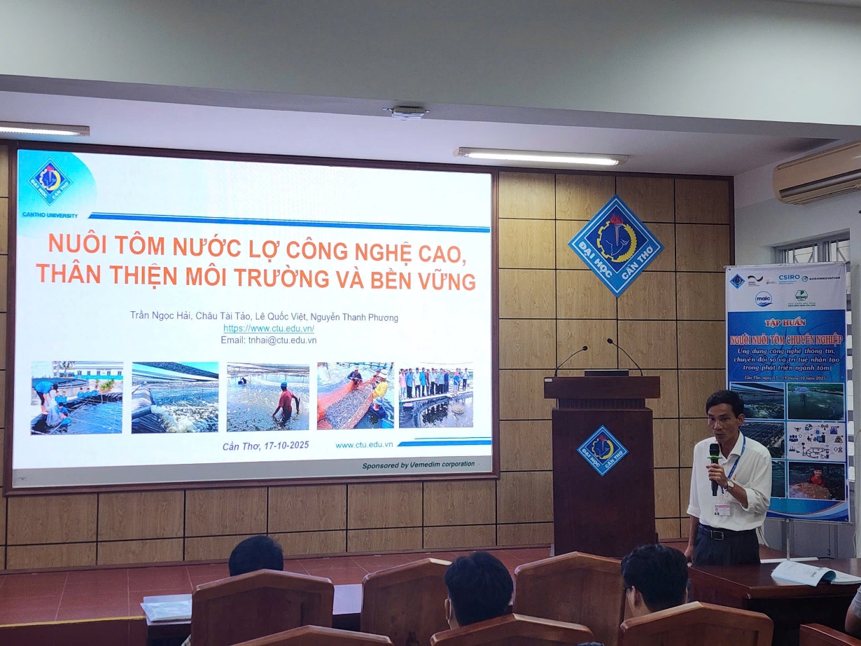 Trong các ngày 17-19/10/2025, Đại học Cần Thơ phối hợp cùng với Tổ chức CSIRO – Úc và GIZ – Đức tổ chức khóa tập huấn Người nuôi tôm chuyên nghiệp với chủ đề “Ứng dụng công nghệ thông tin, trí tuệ nhân tạo, chuyển đổi số trong phát triển ngành tôm”.