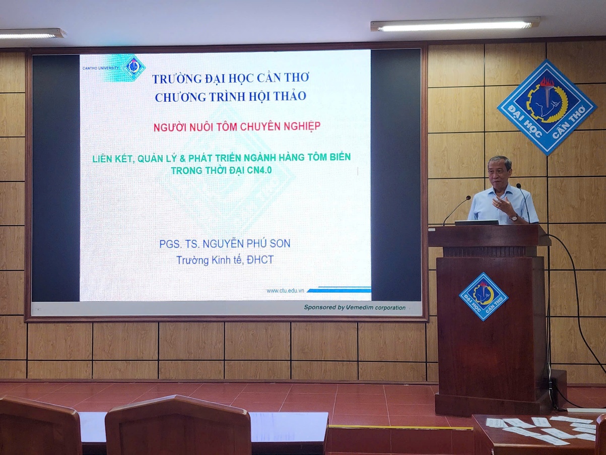 PGS TS Nguyễn Phú Son trình bày về liên kết và quản lý phát triển ngành tôm