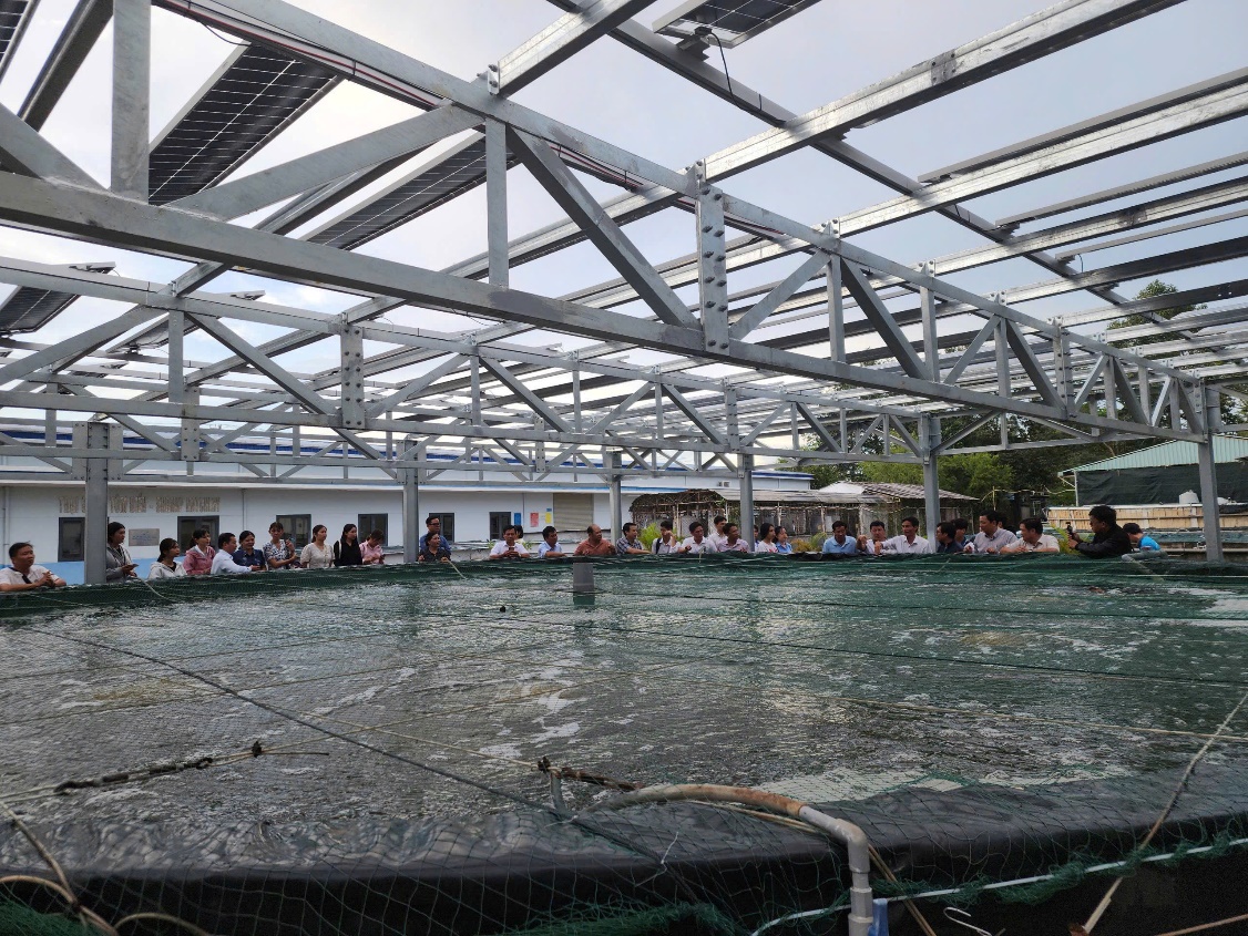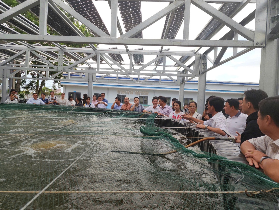 Chương trình tập huấn còn được giới thiệu và tham quan mô hình Nuôi tôm chân trắng siêu thâm canh trong hệ thống tuần hoàn kế hợp đa loài (CTU-RAS), tích hợp với hệ thống giám sát môi trường tự động và năng lượng mặt trời, tại Trường Thủy Sản – Đại học Cần Thơ. Đây là mô hình mới, với nhiều ưu điểm quan trọng,như: Có hiệu quả cao về kỹ thuật, kinh tế và môi trường; Thân thiện môi trường (tuần hoàn nước hoàn toàn nên ít tốn nước; ít xả thải, ít tốn diện tích đất, tối đa hóa diện tích nuôi tôm); An toàn sinh học, hạn chế tối đa rủi ro dịch bệnh; Giảm lượng và giảm chi phí thức ăn, khoáng và hóa chất (bổ sung thức ăn là bí đỏ); Sản phẩm sạch, tự nhiên, chất lượng cao, an toàn thực phẩm (không dùng kháng sinh, sử dụng thức ăn bí đỏ); Có khả năng thích ứng tốt với Biến đổi khí hậu; Có khả năng ứng dụng công nghệ cao, công nghệ thông minh vào quản lý, vận hành; Có khả năng triển khai ở các qui mô nhỏ - lớn khác nhau, nông hộ - công ty, ở vùng ven biển hay đặc biệt là vùng đô thị nội địa, phục vụ sản phẩm sạch, chất lượng cao và tươi sống cho đô thị.