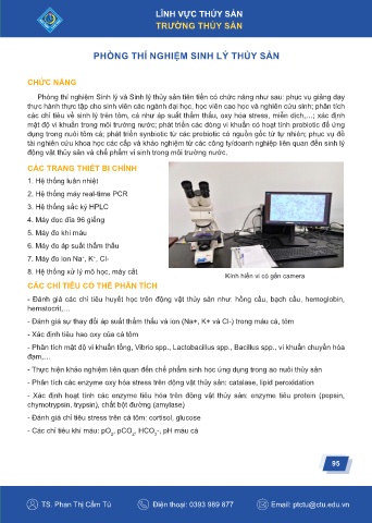 Phòng thí nghiệm Sinh lý và Sinh lý thủy sản tiên tiến có chức năng như sau: phục vụ giảng dạy