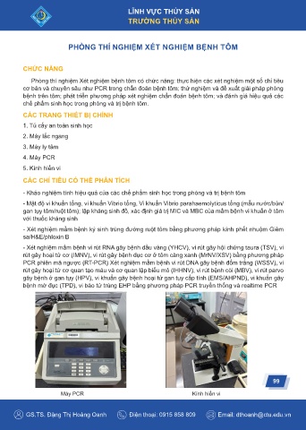 cơ bản và chuyên sâu như PCR trong chẩn đoán bệnh tôm; thử nghiệm và đề xuất giải pháp phòng