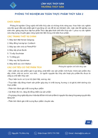 Phóng thí nghiệm Công nghệ chế biến thủy sản có những chức năng sau: thực hiện các nghiên