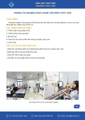 Phòng thí nghiệm Công nghệ chế biến thủy sản tiên tiến được sử dụng để phục vụ cho các hoạt