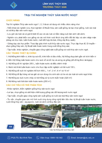 Trại thí nghiệm Thủy sản nước ngọt 1, 2, 3 được sử dụng với nhiều chức năng như: