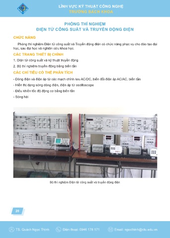 Phòng thí nghiệm Điện tử công suất và Truyền động điện có chức năng phục vụ cho đào tạo đại