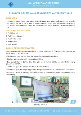 Phòng thí nghiệm Mạng công nghiệp và Truyền thông được sử dụng để phục vụ đào tạo ngắn