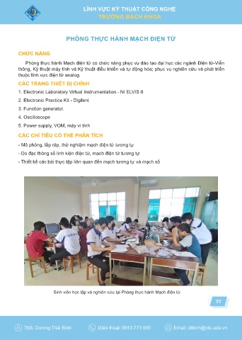 Phòng thực hành Mạch điện tử có chức năng phục vụ đào tạo đại học các ngành Điện tử-Viễn