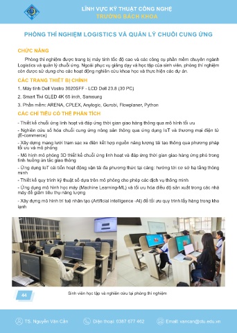 Logistics và quản lý chuỗi ứng. Ngoài phục vụ giảng dạy và học tập của sinh viên, phòng thí nghiệm