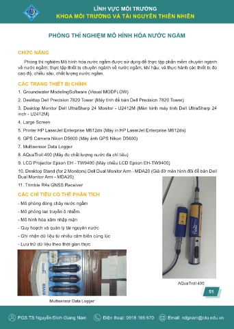 PHÒNG THÍ NGHIỆM MÔ HÌNH HÓA NƯỚC NGẦM
