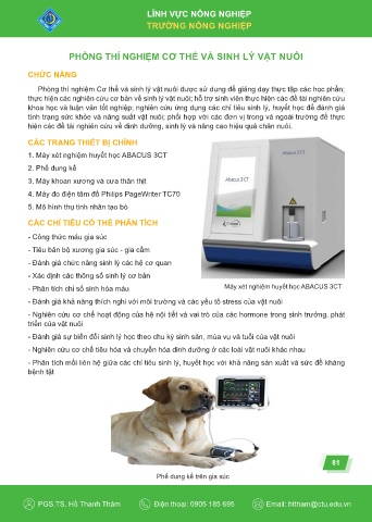 Phòng thí nghiệm Cơ thể và sinh lý vật nuôi được sử dụng để giảng dạy thực tập các học phần;